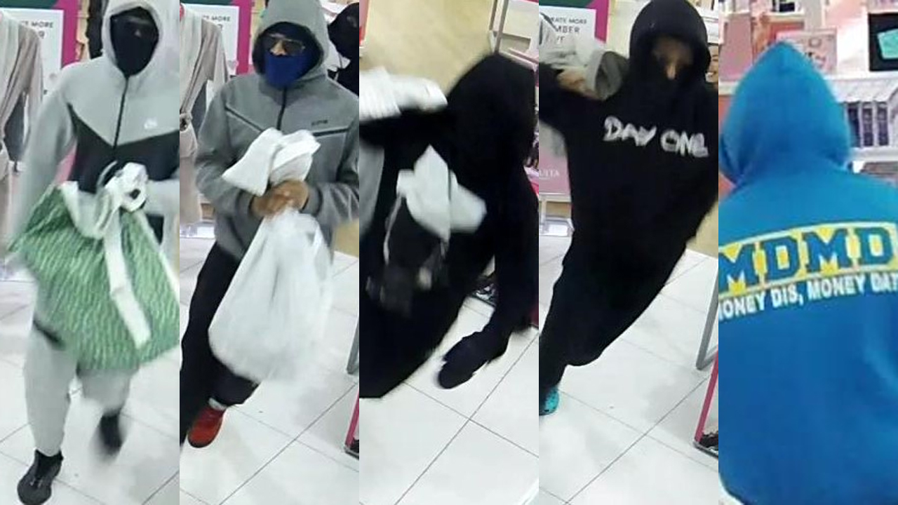 Police say five suspects went inside with bags, and left out with numerous pieces of merchandise, in the blink of an eye.