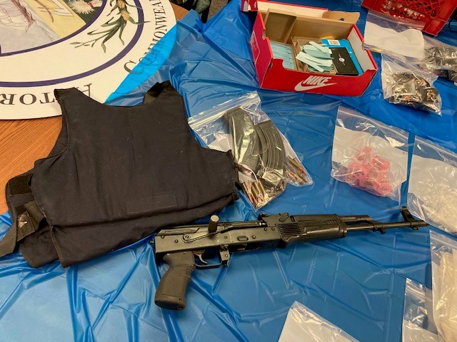 Police say they recovered 372 grams of cocaine, 16 grams of crack cocaine, 2,041 grams of Marijuana, $4,450 cash, a kilo press (for bulk packaging), and a .380 Ruger handgun, from one of the properties. They recovered 39,000 bags of packaged Fentanyl, 477.5 grams of bulk Fentanyl, 156 grams of Crystal Meth, 183 grams of cocaine, 2 grams of crack cocaine, 1,213 grams of Marijuana, an Ak-47assault rifle, ballistic body armor, and packaging and distribution paraphernalia from the second property.
