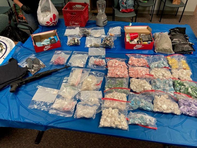 Police say they recovered 372 grams of cocaine, 16 grams of crack cocaine, 2,041 grams of Marijuana, $4,450 cash, a kilo press (for bulk packaging), and a .380 Ruger handgun, from one of the properties. They recovered 39,000 bags of packaged Fentanyl, 477.5 grams of bulk Fentanyl, 156 grams of Crystal Meth, 183 grams of cocaine, 2 grams of crack cocaine, 1,213 grams of Marijuana, an Ak-47assault rifle, ballistic body armor, and packaging and distribution paraphernalia from the second property.