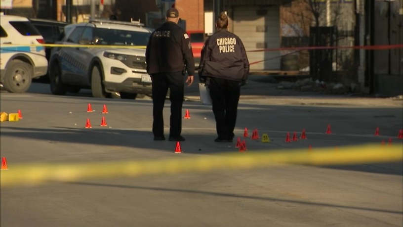 Police returned to the scene of a shooting in which seven men were shot in Chicago on Sunday afternoon. According to a report from CBS-2 CHICAGO, police were interviewing possible witnesses and passing out flyers at the strip mall located at 79th Street & Exchange Avenue, on Monday morning/afternoon.