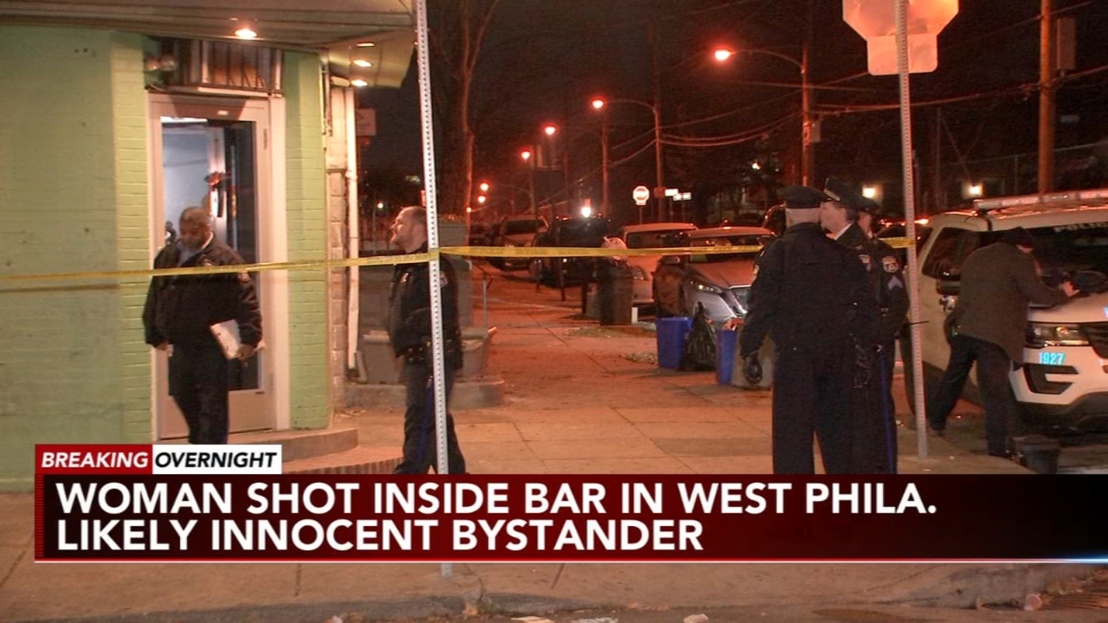 The victim was shot once in the leg. She was taken to Penn Presbyterian Medical Center where she was last reported to be in stable condition. No one else in the bar was reported injured.