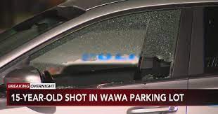 The teen was shot while sitting inside of a car in front of Wawa. He ran into the store for help after being shot. First arriving police at the scene reported finding the teen victim, conscious, talking, and walking inside of the store despite being shot in the torso and arm.
