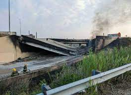 A tanker truck fire burning under an overpass on I-95 caused a large section of the highway to collapse in the Tacony section of the city early this morning.