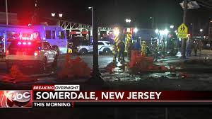 A car reportedly brought down power poles and caused a gas leak before finally smashing into a restaurant in Somerdale, N.J., early this morning.
