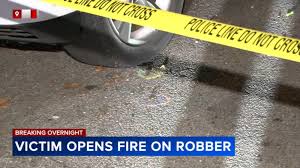 Police said the masked suspect pulled out a gun, went in the victims pocket and pulled out a wallet. The robbery victim then pulled out his gun and fired. The robber dropped the wallet and fled the scene on foot. The robbery victim continued firing as he did. Police said they are unsure if the robber was hit.